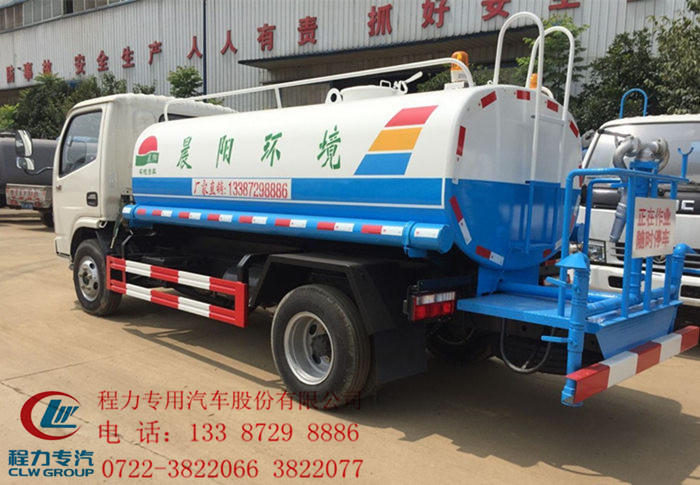 采用東風股份公司原裝底盤,國五發動機,東風5檔變速箱,7.00-16的輪胎,帶ABS,帶空調。帶前沖、后灑、側噴、高位花灑,后部帶平臺,平臺上安裝綠化灑水高壓炮(炮噴射形狀可調:直沖狀、大雨、中雨、毛毛雨,可連續調節),配備大功率40/45專用灑水泵,帶消防接頭,帶自流閥,帶自吸功能,帶濾網。吸程≥6米、灑水寬度≥14米、45度角時灑水炮噴射距離可達25-30米。 罐體容積5噸,罐體全部采用武鋼產4mm國標碳鋼板, 前后封頭采用國家標準對接焊,機械折邊,一次性壓制成型。整罐為直縫焊一次成型,圓弧形對接焊封頭,抗沖擊力和拉力強。罐體的截面形狀為橢圓形或方圓形,內部制造成多倉室結構,各個倉室用加強防波隔板隔開,以減輕汽車行駛時罐體內水的沖擊和提高罐體的強度。隔板與罐體之間采用焊接剛性連接形式,防浪板包邊處理,隔板下端有通孔。罐體的頂部開有出入孔。 |