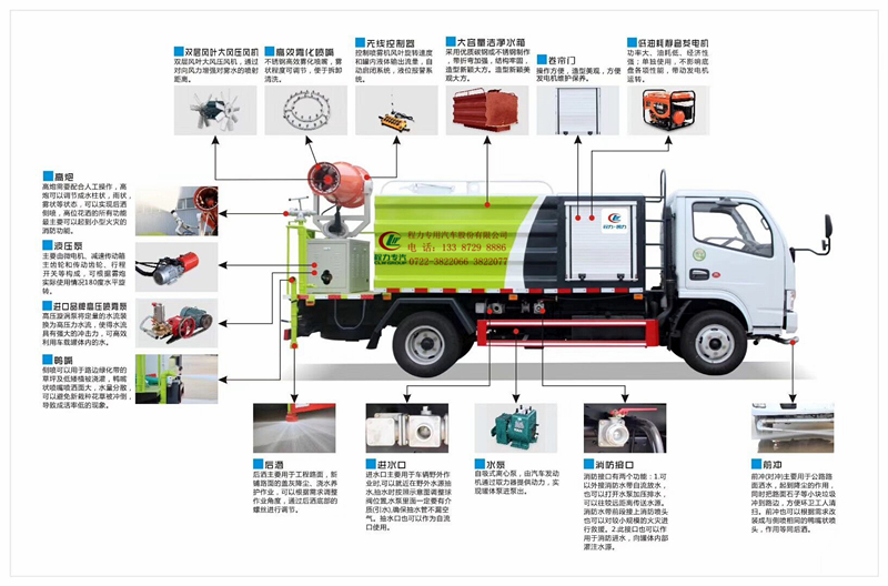 采用東風股份公司總部新款駕駛室底盤,國六發動機,7.00R16的鋼絲胎,電動門窗,帶ABS。 罐體實際容積5.05噸,帶前沖、后灑、側噴、高位花灑,后部帶平臺,平臺上安裝綠化灑水高壓炮(炮噴射形狀可調:直沖狀、大雨、中雨、毛毛雨,可連續調節),配備大功率60/90專用灑水泵,帶消防接頭,帶自流閥,帶自吸功能,帶濾網。吸程≥6米、灑水寬度≥14米、45度角時灑水炮噴射距離可達25-30米,后霧炮噴射距離25-30米,可通過遙控控制自動左右及上下旋轉。 罐體全部采用武鋼產4mm國標碳鋼板, 前后封頭采用國家標準對接焊,機械折邊,一次性壓制成型。整罐為直縫焊一次成型,圓弧形對接焊封頭,抗沖擊力和拉力強。罐體的截面形狀為橢圓形或方圓形,內部制造成多倉室結構,各個倉室用加強防波隔板隔開,以減輕汽車行駛時罐體內水的沖擊和提高罐體的強度。隔板與罐體之間采用焊接剛性連接形式,防浪板包邊處理,隔板下端有通孔。罐體的頂部開有出入孔。 |